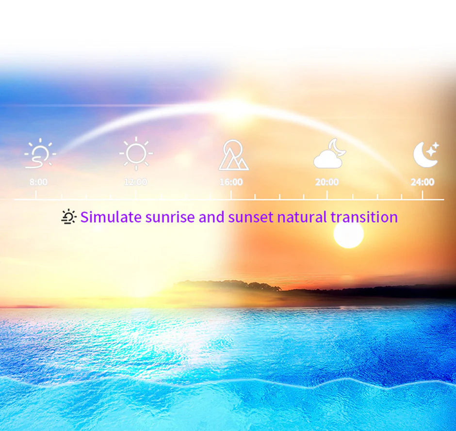 - Programmable, gradual 24-hour light cycle settings (sunrise, midday, sunset and night)